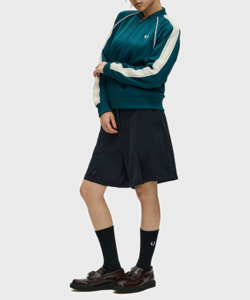ボディは定番のトラックジャケットと同様のシルエットです。首元がスッキリなのでマフラーとのスタイリングがオススメです。