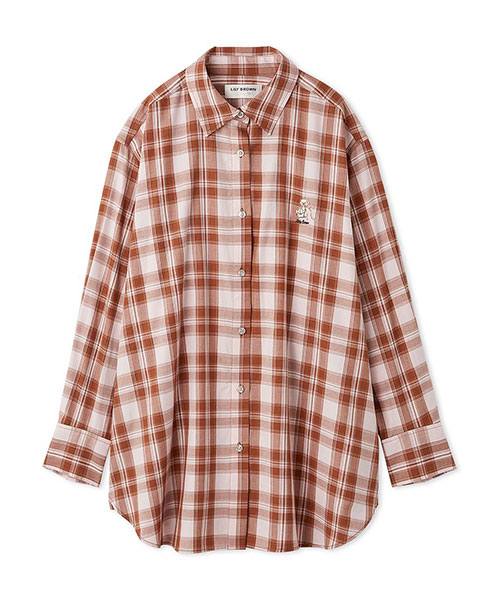 毎シーズン人気のLily Bearシャツが、オリジナルの先染めチェック生地でアップデート。ナードな雰囲気漂うオンブレーチェックを、キレイ色の配色とリボン刺繍で「LILY BROWN」らしいフェミニンなムードに仕上げました。ゆったりとしたオーバーサイズシルエットで、ボタンを閉じてワンピース風にも、羽織としても着用可能。両サイドにはボタンが施されており、シルエットに変化をつけて楽しめます。