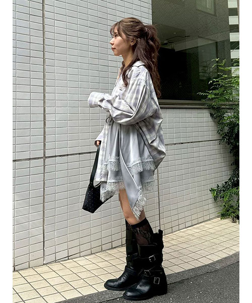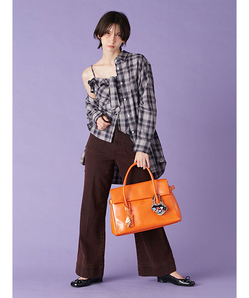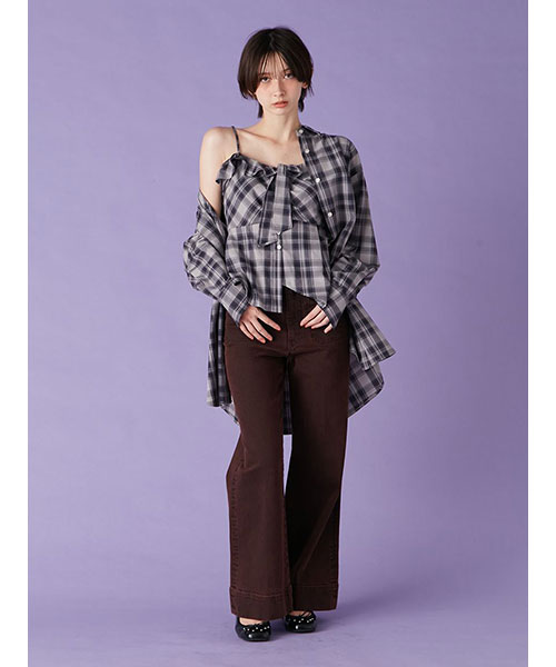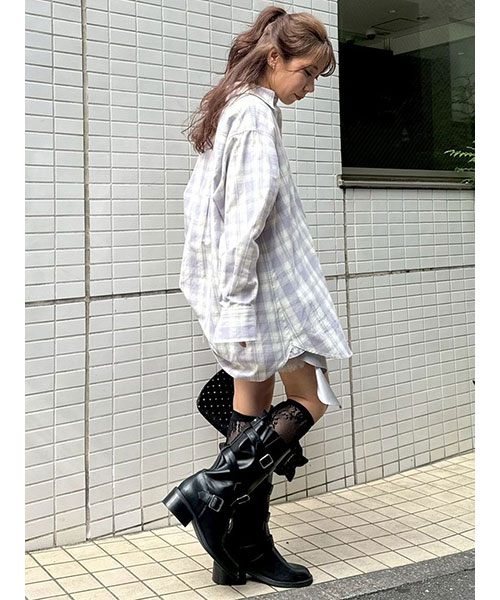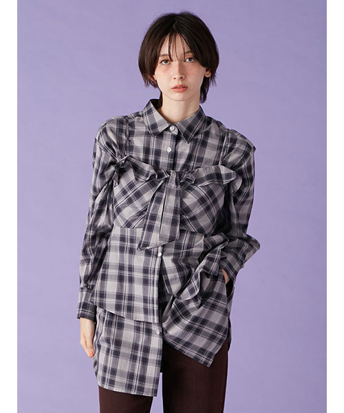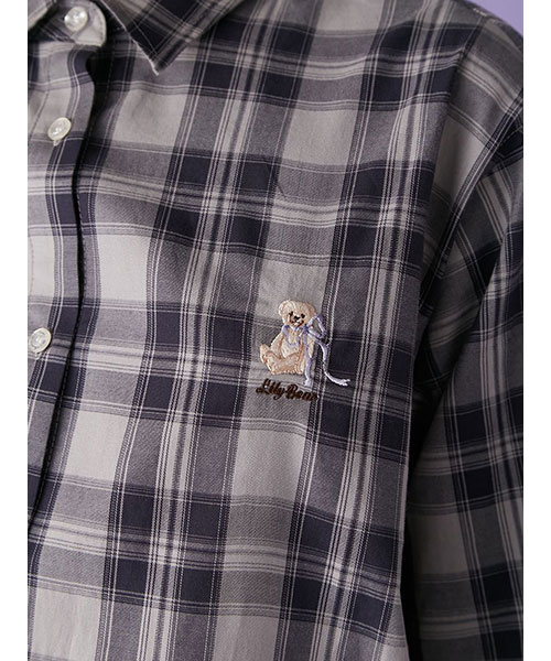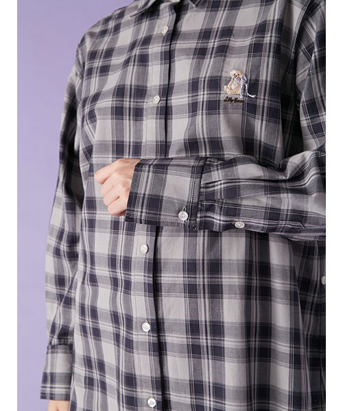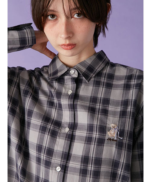 毎シーズン人気のLily Bearシャツが、オリジナルの先染めチェック生地でアップデート。ナードな雰囲気漂うオンブレーチェックを、キレイ色の配色とリボン刺繍で「LILY BROWN」らしいフェミニンなムードに仕上げました。ゆったりとしたオーバーサイズシルエットで、ボタンを閉じてワンピース風にも、羽織としても着用可能。両サイドにはボタンが施されており、シルエットに変化をつけて楽しめます。