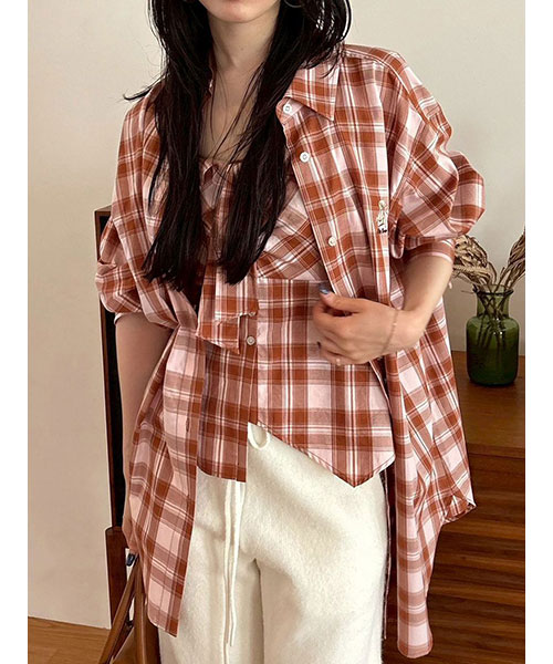 やわらかくも程よくハリのある、先染めのコットン混チェック生地を使用。カラーの奥行きと風合いを活かした、秋冬の主役になる一枚です。