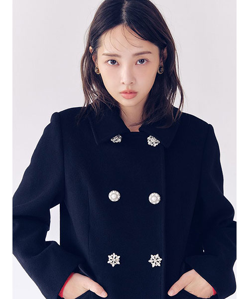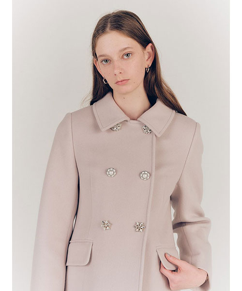 [L.B CANDY STOCK]ダブルビジューミディコート