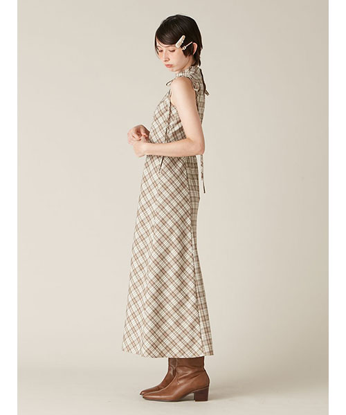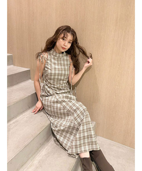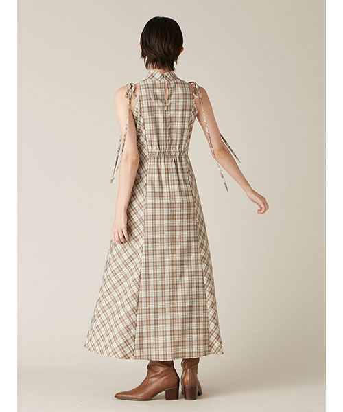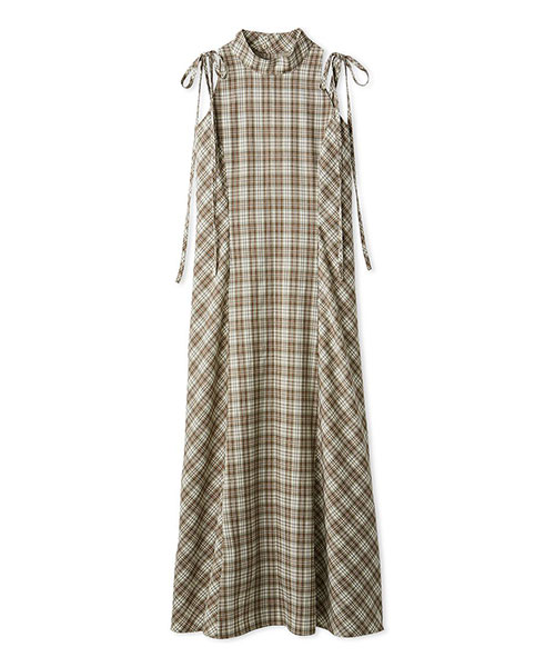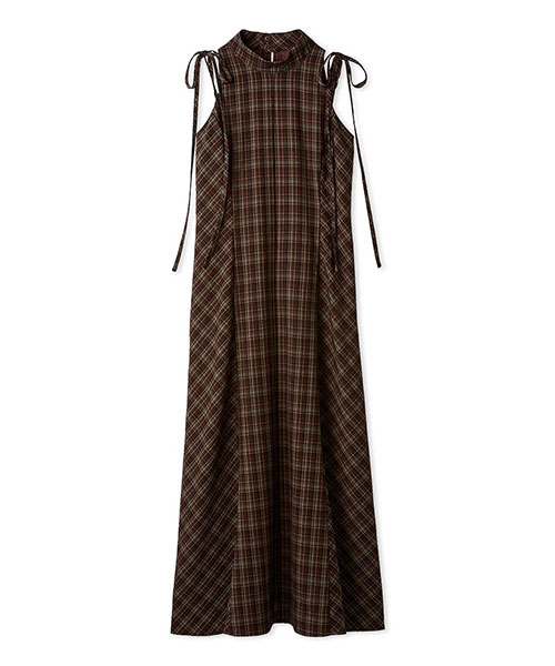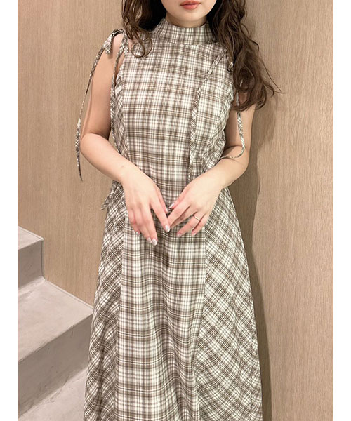 肩幅をややコンパクトに設定したアメリカンスリーブに、華奢な肩紐リボンをプラスしたロングワンピース。トレンド感と女性らしさを兼ね備えたデザインで、肩まわりを美しく見せてくれます。高めに設定されたウエストはカーブラインに仕上げており、自然なくびれを演出しスタイルアップ効果も抜群です。1枚でさらっと着られるため、シーズン問わず重宝する主役アイテムです。