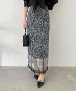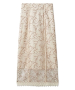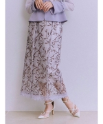 線画タッチの花柄に立体コードを縁取った、「LILY BROWN」ならではのオリジナル刺繍が目を惹くスイッチングスカート。裾には繊細なレーステープをあしらい、クラシカルでレディな印象に。縦のラインを強調するサテンパイピングが視覚的なスタイルアップを叶えます。トップスのインもすっきり決まるハイウエスト仕様で、後ろはゴムを入れて快適なフィット感に仕上げました。
