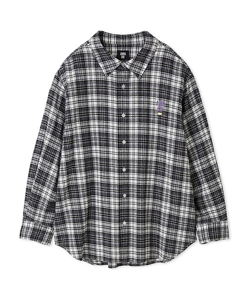 オリジナルで織り上げた先染めチェックを使用した、ANNA SUIコラボのネルシャツ。ほどよく落ち感のあるオーバーサイズシルエットで、1枚着はもちろん、羽織りとしても活躍します。今季は腰にラフに巻いて、コーディネートのアクセントとして取り入れるのもおすすめ。左胸には「ANNASUI」の刺繍、後ろ襟下にはバタフライ刺繍を施し、ディテールまでこだわった一枚です。