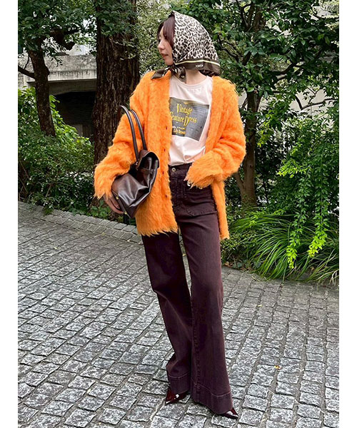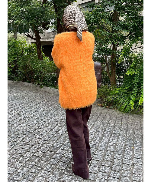 ふわっとした手ざわりが心地よいフェザー素材を使用し、着るだけでやさしい雰囲気を演出。軽さと暖かさを兼ね備えた素材感で、秋冬のレイヤードにぴったりです。
