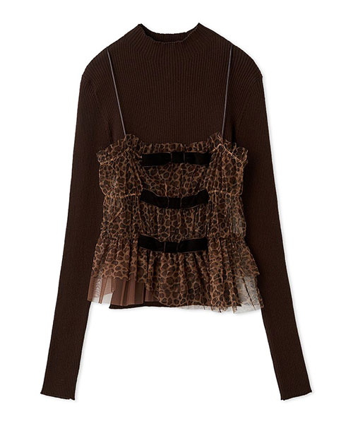 フロントにあしらったベロアリボンが印象的なビスチェと、ベーシックなニットトップスがセットになった着回し力の高いアイテム。ビスチェはシャーリングゴム入りでフィットしやすく、ストレスフリーな着心地に。ランダムヘムを重ねたペプラムが立体感と華やかさを演出し、コーディネートの主役としても映える一枚です。セット使いはもちろん、それぞれ単品でも着回しやすく、幅広いスタイリングに活躍します。