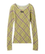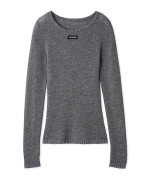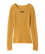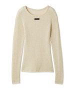 非常に細く柔らかなキッドモヘア混の糸に、ラメ糸を引きそろえた素材を使用。ラメの華やかさを保ちながらも肌触りがよく、ロングシーズン活躍するシアーニットです。