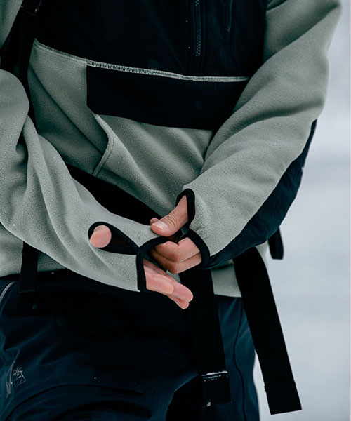 冬季の野外活動ではミドラーとして、室内着やタウンユースの軽いアウターとしても活躍する一着です。