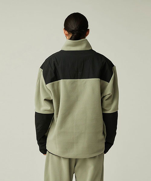 厚みのある両面起毛リサイクルフリースを使用し、ミドラーからタウンユースまで幅広く対応。肘・肩周りには摩擦に強いタッサー素材を採用し、耐久性を確保しています。