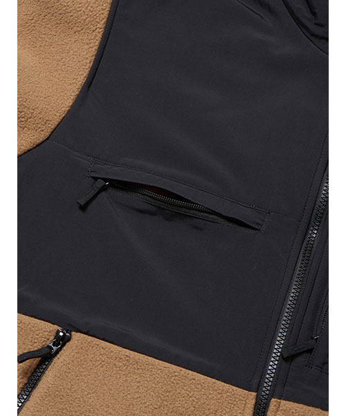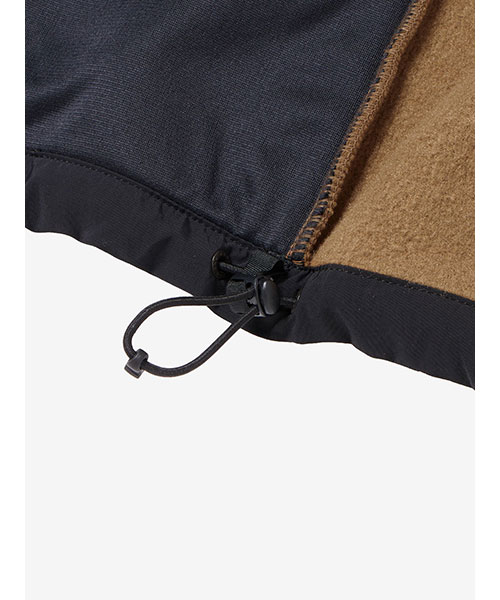 ポリエステルのマイクロフリース素材は、軽くて厚みがあり柔らかな着心地。デッドエアを効果的にため込み、衣服内を適温に保つうえ、裾のドローコードでさらに気密性を高めることができます。パックに干渉する肩はナイロン生地で補強。専用ファスナーでアウターを連結できるジップインジップシステム対応モデルです。