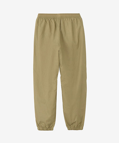 表地ははっ水性がある軽量のリサイクルナイロン生地を使用。裏地はリサイクルポリエステルの起毛トリコットです。裾はゴムシャーリングで裾を引きずりにくく、快適なフィット感。ウエストはスピンドル仕様です。