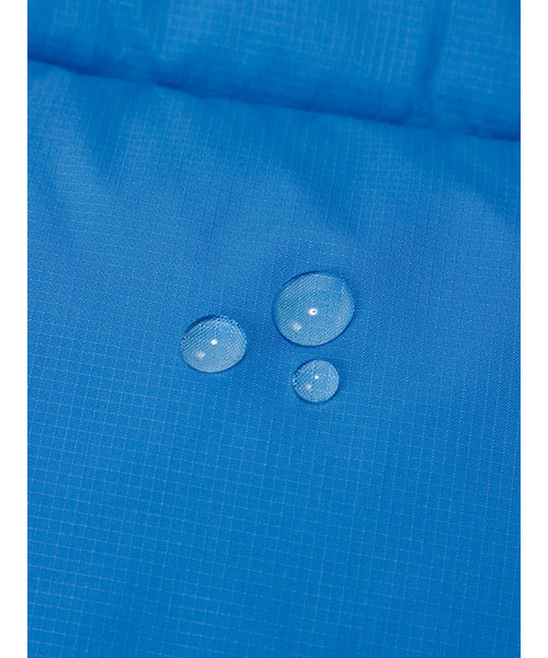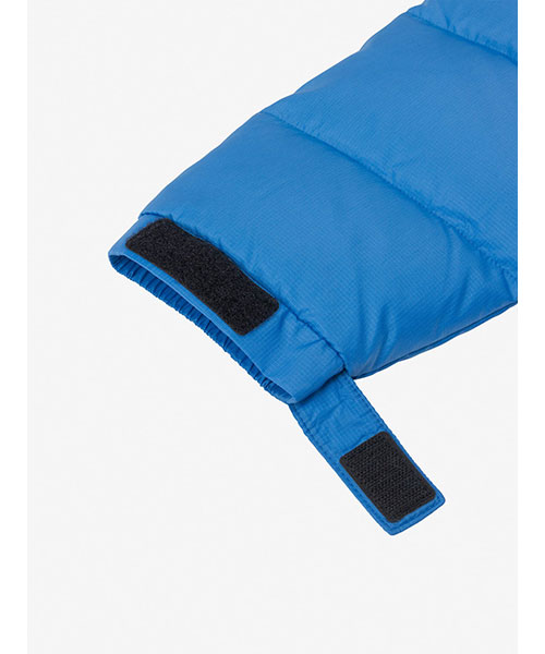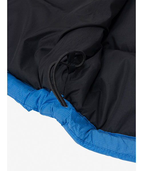 表地ははっ水加工を施したリサイクルナイロン。環境に配慮したリサイクル可能なダウンを中わたに使用しています。携行に便利なスタッフサック付き。