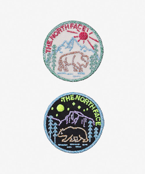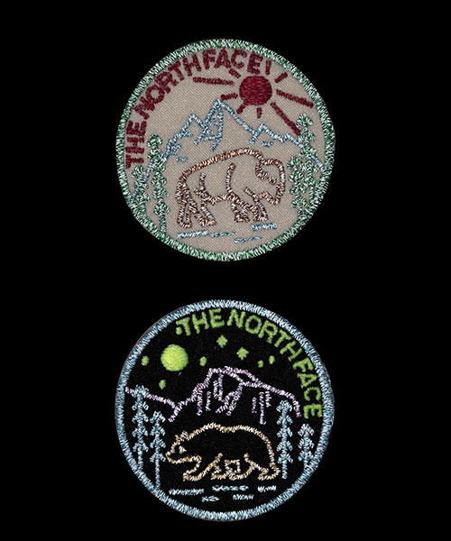 家庭用アイロンで接着することができ、ニットや布帛、ナイロン、ポリエステル、コットン、はっ水加工を施した生地など、さまざまな素材に対応します。LG(ロゴ)は刺繍部分にリフレクト糸を使用し、NP(ネイチャー)はTHE NORTH FACEの文字と太陽、月、星の刺繍部分に蓄光糸、その他の刺繍部分にリフレクト糸を使用。