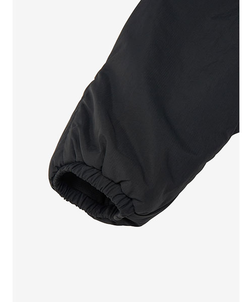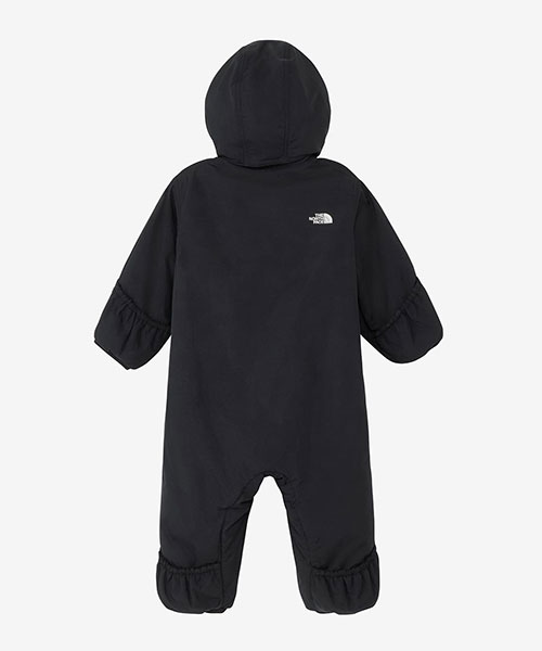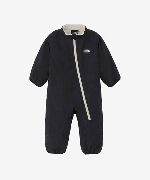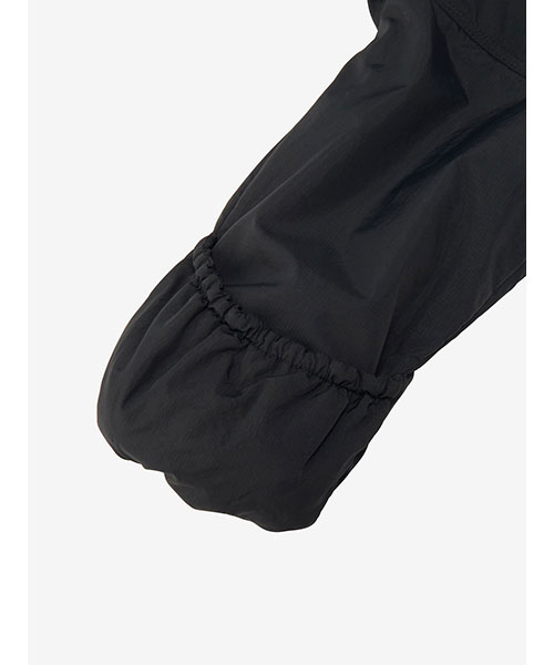 裏地には毛足のあるシェルパフリース、表地には軽量ではっ水性のあるリップストップナイロンを採用しています。手と脚の先はひっくり返すとカバーになる仕様。フードは取り外しが可能です。