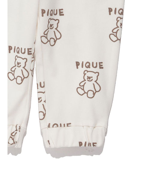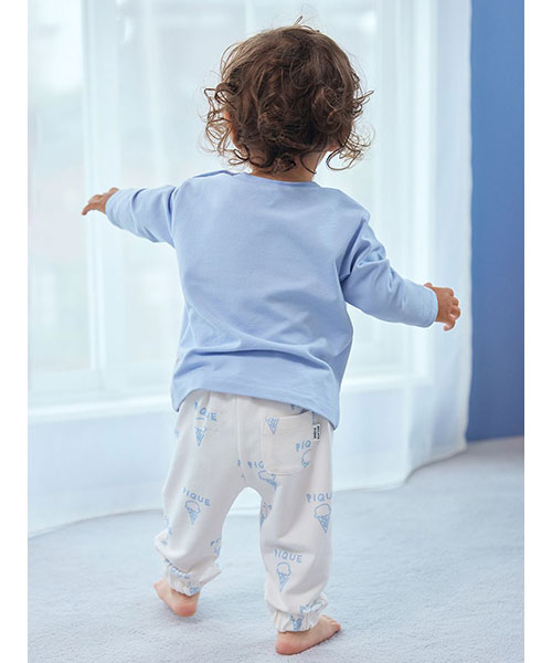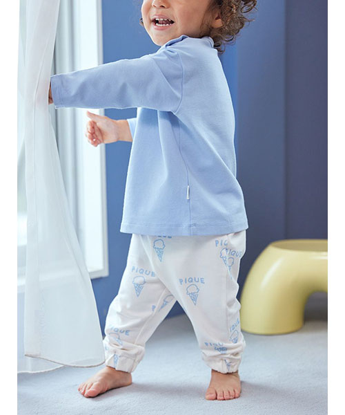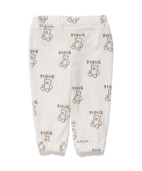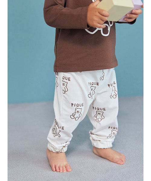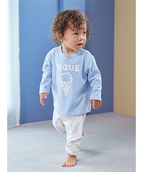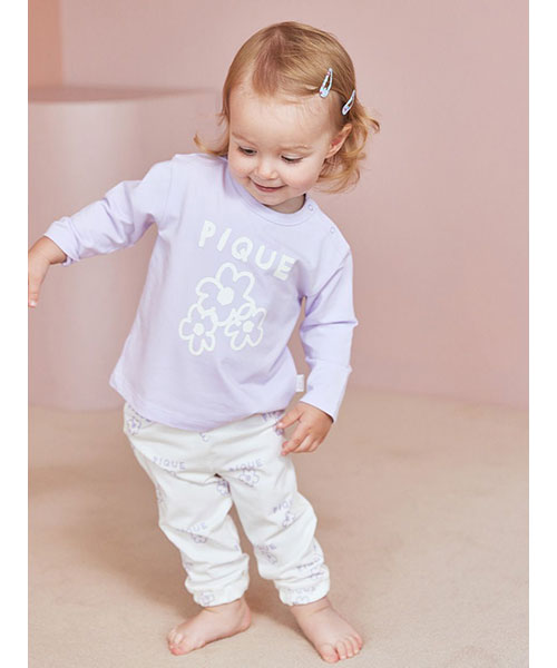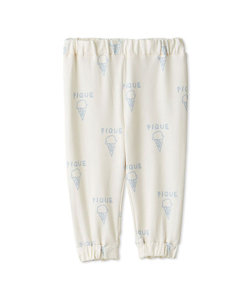 落書きのような軽いタッチのモチーフが可愛い、デイリーに楽しめるペイントシリーズです。ベア、フラワー、アイスといったキャッチーなモチーフを柄プリントしたBABYサイズのロングパンツ。しなやかなベア天竺を使用し、裾を絞ったスポーティな形で動きやすく仕上げました。色はベア柄のブラウン、フラワー柄のラベンダー、アイス柄のブルーの全3色。同シリーズのロンTやスムーズィー素材のトラックジャケットと合わせたり、KIDSアイテムとのリンクコーディネートもお楽しみいただけます。