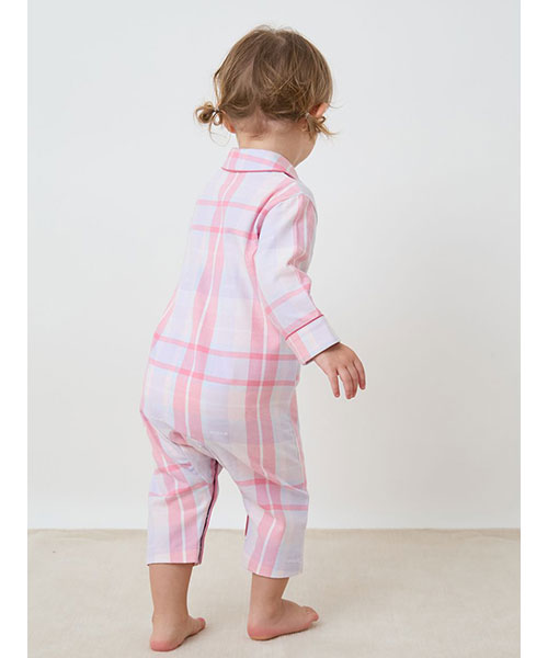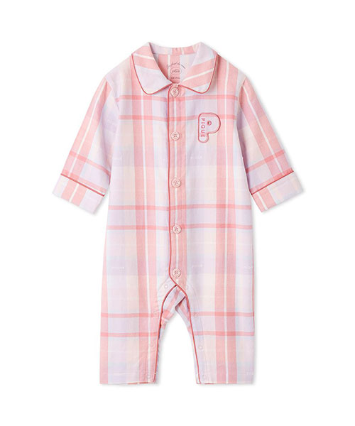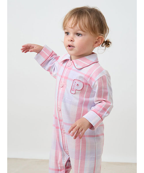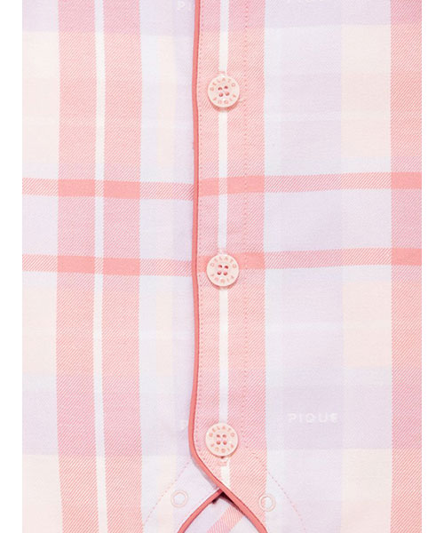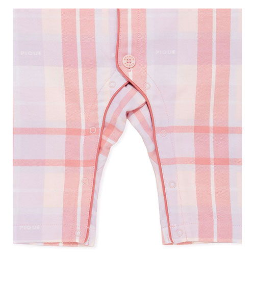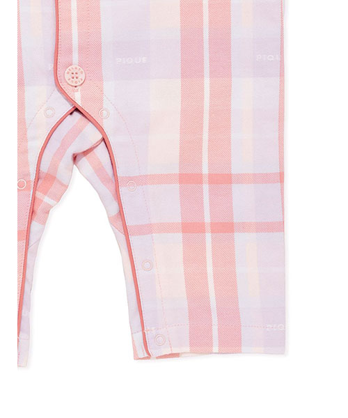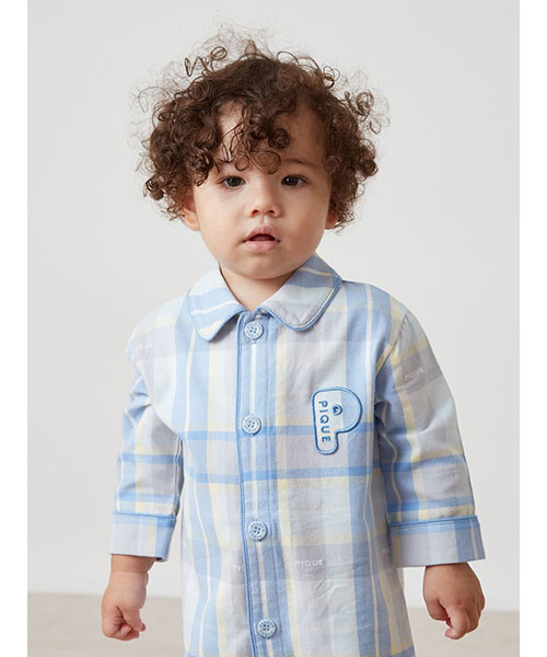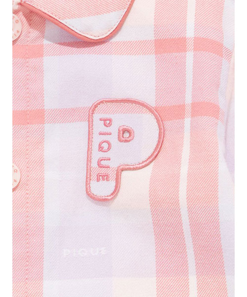 コットン100%で織り上げた、HAPPYなカラーリングのチェック柄が印象的なシャツ型のBABYロンパースです。配色のパイピングを入れ、胸元にPのワッペンを添えた品のあるデザイン。チェック柄にさりげなく織り込まれているpiqueのロゴがこだわりです。色は温かみのあるピンクと、爽やかな印象のブルーの2色。同シリーズのKIDSアイテムと合わせれば、きょうだいでお揃いのコーディネートもお楽しみいただけます。