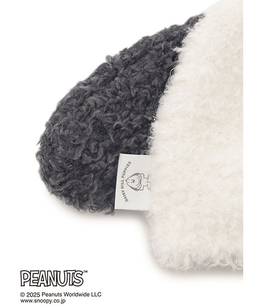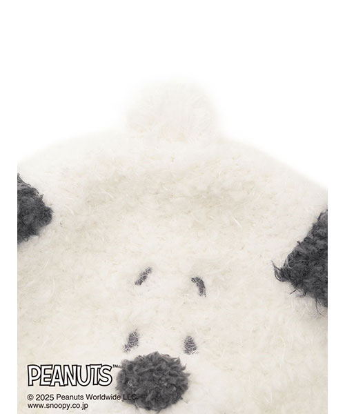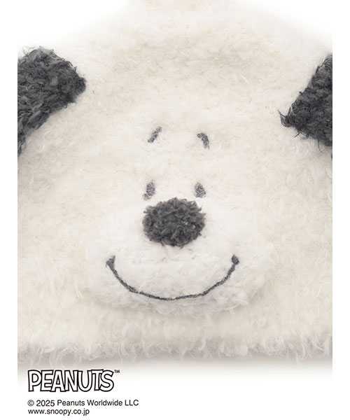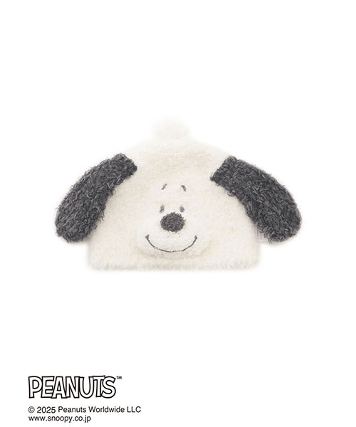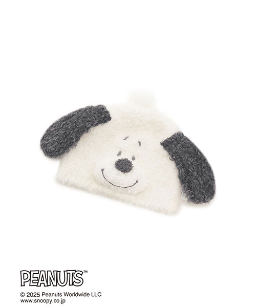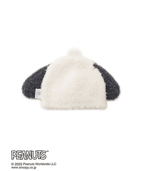 パピーのようにくるくるっとした糸で編んだ、スヌーピーモチーフのベビーサイズのキャップ。立体的な耳とマズル付きで、ニコニコ顔のキュートなスヌーピーに癒されます。