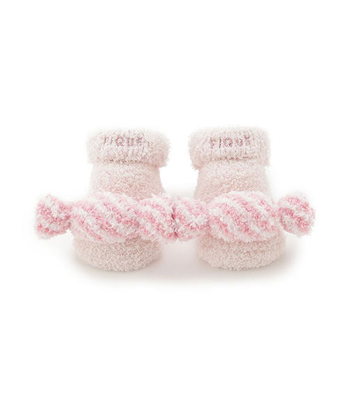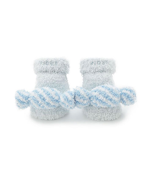 キュートなキャンディをモチーフにした、’ベビモコ’素材のBABYシリーズ。つま先に付けた大きなキャンディがアクセントになったルームソックスです。足底に滑り止め付き、ワンポイントでロゴ刺繍も入っています。同シリーズのルームウェアや小物、同時期に展開するベビモコカラフルボーダーシリーズに合わせたり、ギフトにもおすすめです。