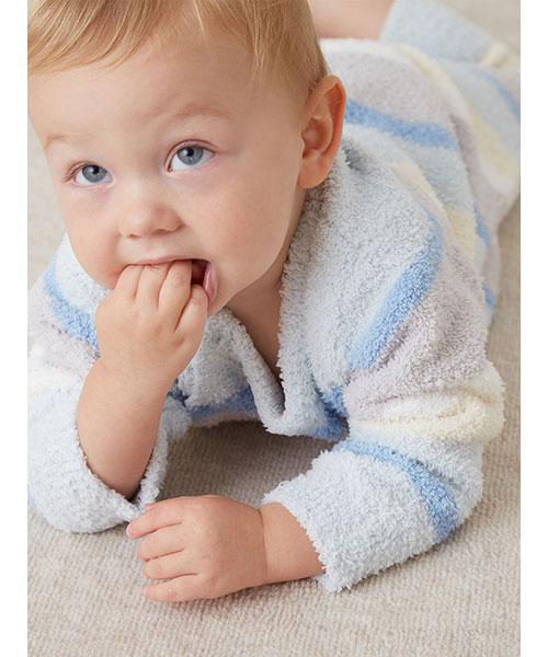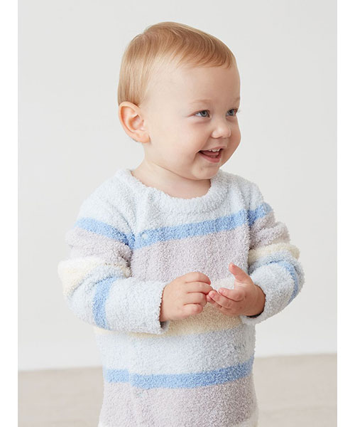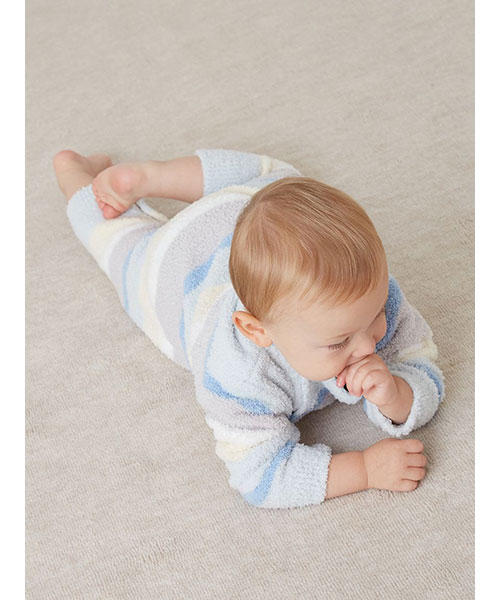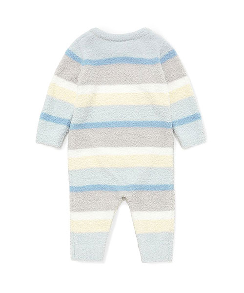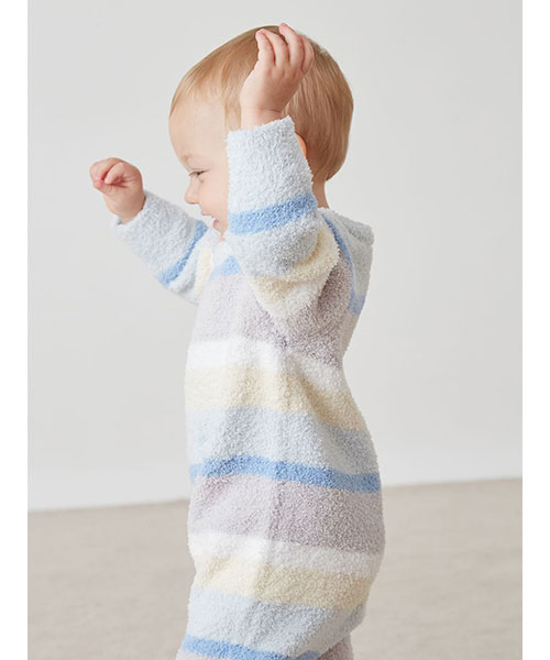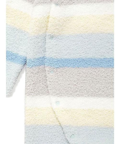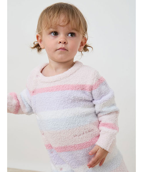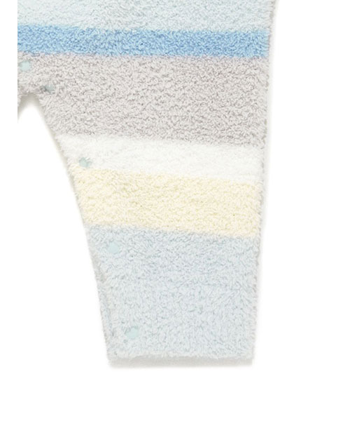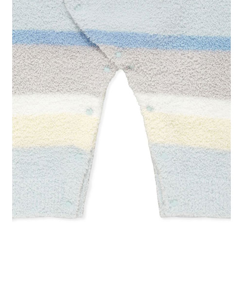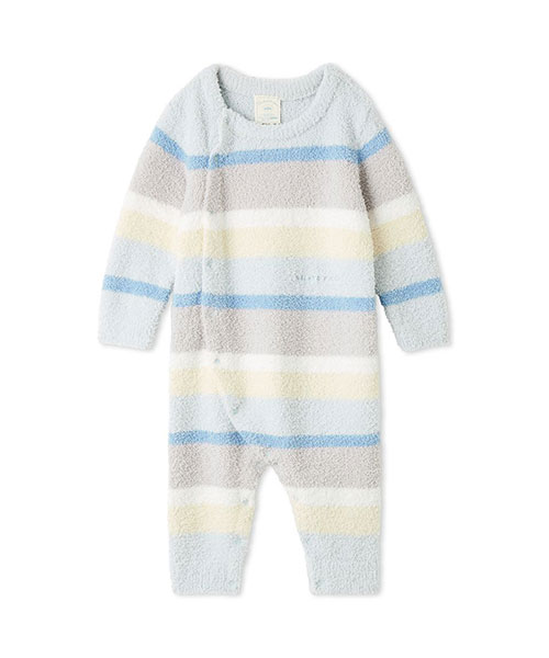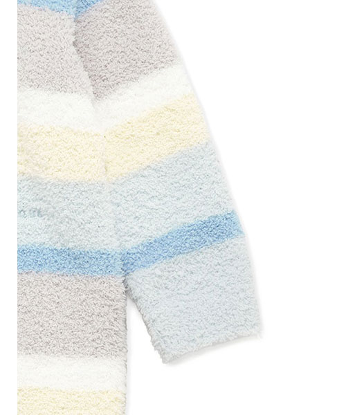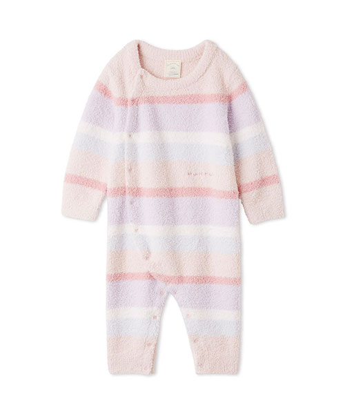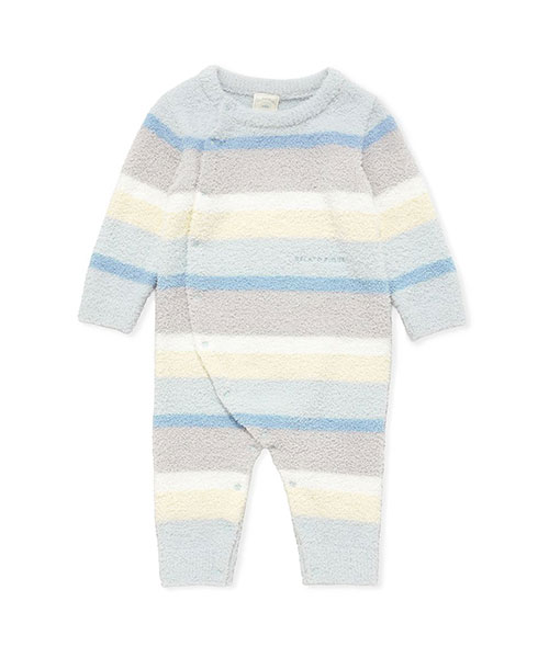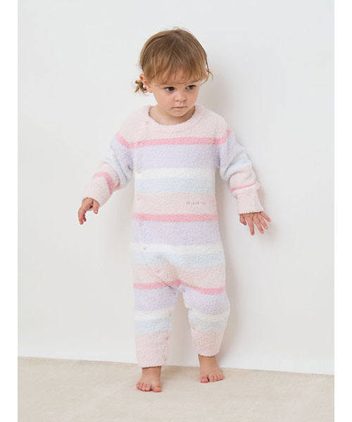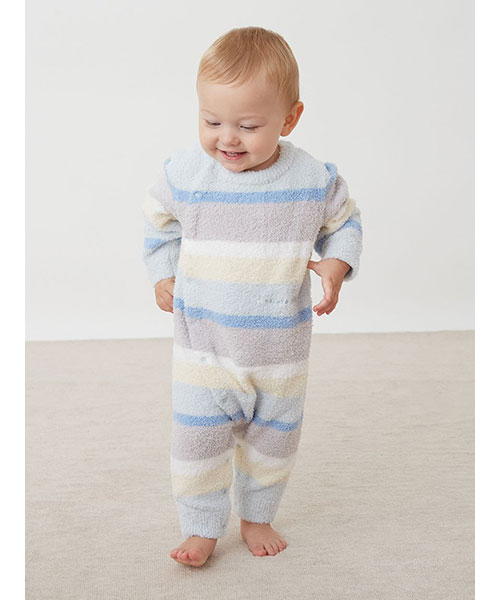 キャンディのようなカラフルなボーダー柄が幸せ気分を演出する、親子でお楽しみいただける’ベビモコ’シリーズです。ふっくら軽い着心地のBABYサイズのロンパース。季節の変わり目から春先までロングシーズンでお楽しみいただける1枚です。フロントにワンポイントでロゴ刺繍も入れました。色はピンクとブルーの2色展開。同シリーズのポンチョやキャンディシリーズの小物と合わせたり、LADIES’、KIDSアイテムとのリンク・コーディネートもおすすめです。