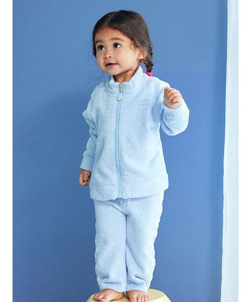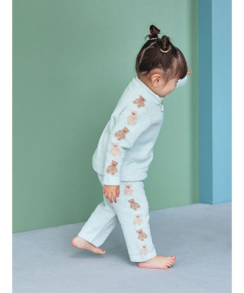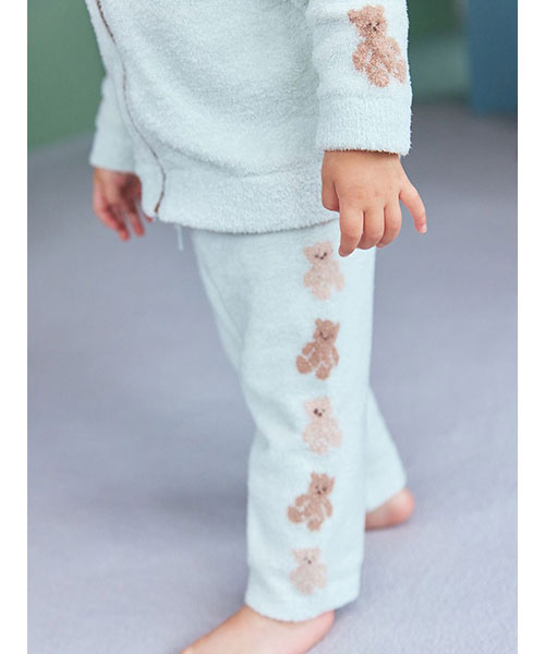 トレンドのスポーツテイストを旬のカラーリングで表現したシリーズ。両脇にライン状のジャガード柄を入れた、キャッチーな存在感のトラックパンツです。汗を素早く吸う吸水機能を備えているので、暑さが残りやすい秋に最適な素材感。ジャガード柄は色ごとに異なるデザインになっています。左腰に入れたロゴ刺繍がさりげないアクセントです。色はベア柄のミント、フラワー柄のラベンダー、スター柄のブルーの3色展開。同シリーズのトラックジャケットや同時期に展開するペイント柄カットソーシリーズを合わせたり、KIDSアイテムとのリンクコーディネートもお楽しみいただけます。
