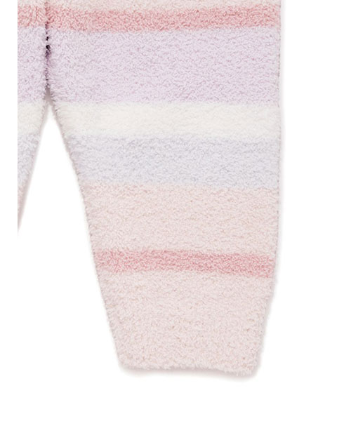 キャンディのようなカラフルなボーダー柄が幸せ気分を演出する、親子でお楽しみいただける’ベビモコ’シリーズです。ふっくら軽いはき心地のBABYサイズのロングパンツ。裾を絞った動きやすいシルエットで、お休みの際にも裾がまくれにくいのがポイントです。季節の変わり目から春先までロングシーズンでお楽しみいただける1枚。左腰にロゴ刺繍も入れました。色はピンクとブルーの2色展開。同シリーズのポンチョやキャンディシリーズの小物と合わせたり、LADIES’、KIDSアイテムとのリンク・コーディネートもおすすめです。