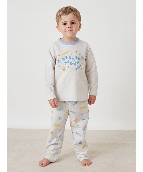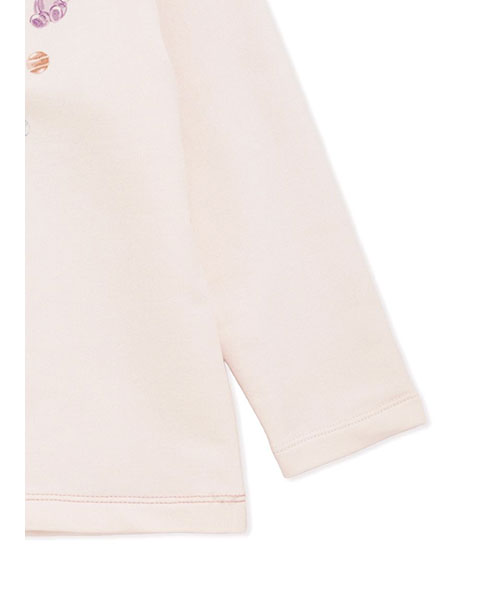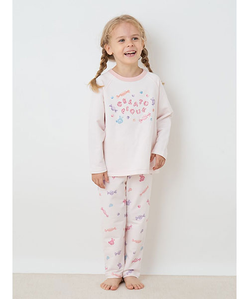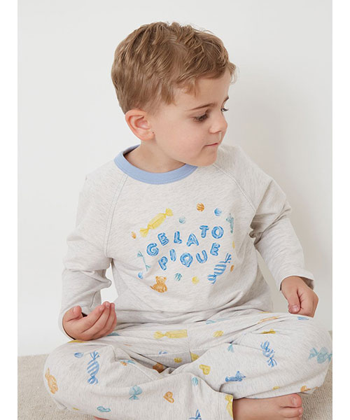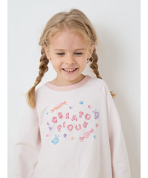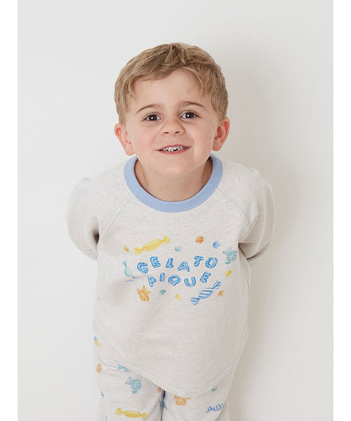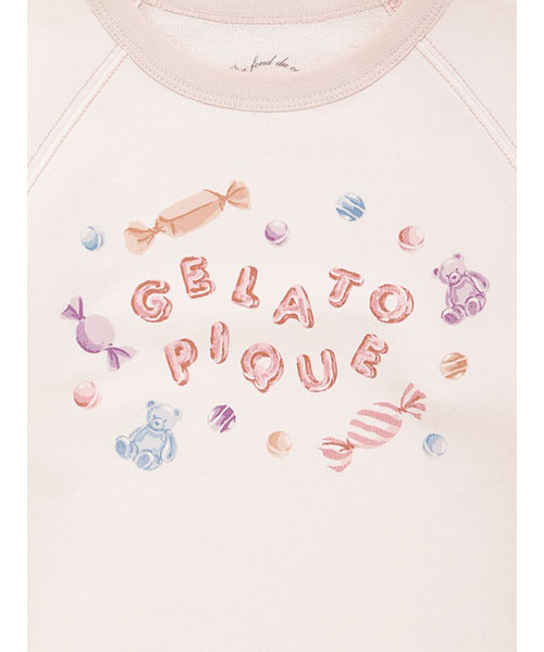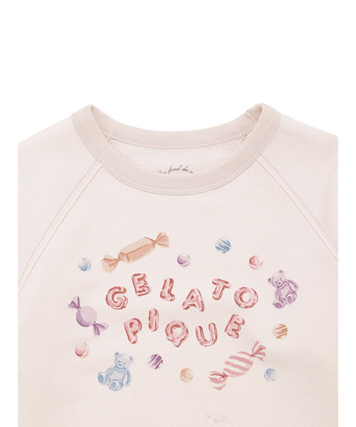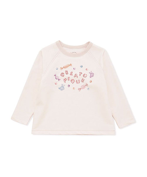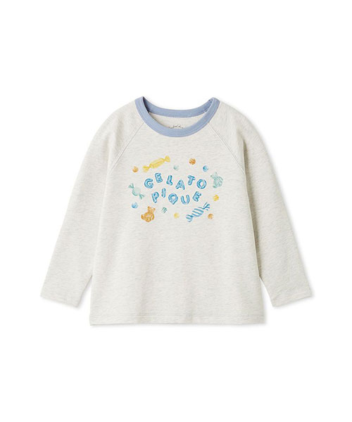 gelato piqueらしいベアやロゴモチーフのカラフルなキャンディを散りばめた、HAPPYなプリントのKIDSロングTシャツです。程良くふっくらとしたコットン混のインレイ素材を使用し、ゆったりとしたラグランスリーブで動きやすく仕上げました。首元の配色デザインがポイントです。色はピンクと杢グレーの2色をご用意。同シリーズのロングパンツや、同時期に展開するベビモコカラフルボーダーシリーズと合わせるのがおすすめです。LADIES’、BABYとのリンク・コーディネートもお楽しみいただけます。