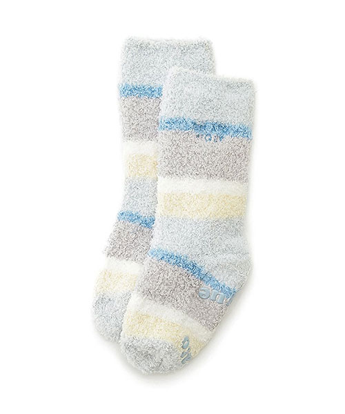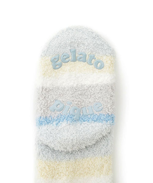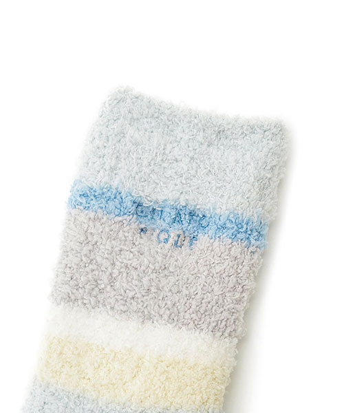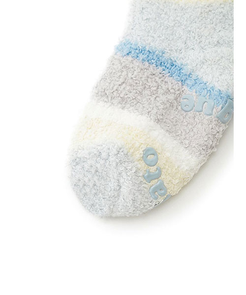 キャンディのようなカラフルなボーダー柄が幸せ気分を演出する、親子でお楽しみいただける’ベビモコ’シリーズです。足元に可愛いアクセントを添えてくれるKIDSサイズのルームソックス。足底に滑り止め付きで、サイドにワンポイントでロゴ刺繍も入っています。同シリーズのルームウェアや小物と合わせたり、BABYアイテムとのリンク・コーディネートも可能です。