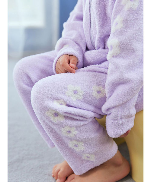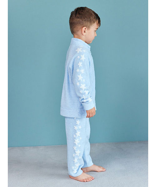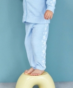 トレンドのスポーツテイストを旬のカラーリングで表現したシリーズ。両脇にライン状のジャガード柄を入れた、キャッチーな存在感のトラックパンツです。汗を素早く吸う吸水機能を備えているので、暑さが残りやすい秋に最適な素材感。ジャガード柄は色ごとに異なるデザインになっています。左腰に入れたロゴ刺繍がさりげないアクセントです。色はベア柄のミント、フラワー柄のラベンダー、スター柄のブルーの3色展開。同シリーズのトラックジャケットや同時期に展開するペイント柄カットソーシリーズを合わせたり、BABYアイテムとのリンクコーディネートもお楽しみいただけます。