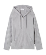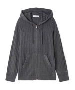 秋の始まりに重宝する温度調節機能の糸を使用した、‘調温スムーズィー’のHOMMEニットシリーズ。今期はやや太めのリブを使用した、大人のリラックス感あふれる仕上がりです。日常に取り入れやすいベーシックな色合いのジップパーカは、袖を通すたびにしっとりなめらかな肌触りが感じられるアイテム。厚手すぎず、Tシャツ等の上からレイヤードしやすいのもポイントです。左袖口にはさりげなくカラーロゴ刺繍も添えました。色はライトグレーとダークグレーの2色をご用意。同シリーズのパンツと組み合わせたり、家族やパートナーの方へのギフトにもおすすめのアイテムです。