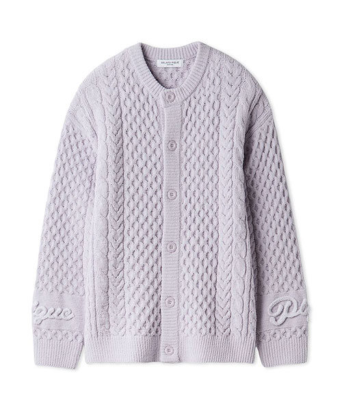 肌触り柔らかな太番手の糸を用いて、ふっくらと軽い質感に仕上げたアラン柄のHOMMEカーディガンです。おうちだけではなくワンマイルにもOKの存在感。袖口にPIQUEのロゴをロープ刺繍で表現して、シンプルな中にも特別感のあるデザインに仕上げました。ゆったり着用いただけるベーシックなシルエットと、ソフトなカラーリングで、秋冬のおうち時間を心地良く包み込みます。色はクリーム、ブルー、ラベンダーの3色展開。インナーには、同時期に展開するレーヨン天竺ロゴプリントロンTがおすすめです。
