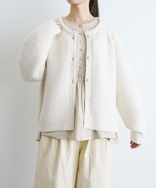 厚みがあり、ふんわりと柔らかな触り心地のニットカーディガン。