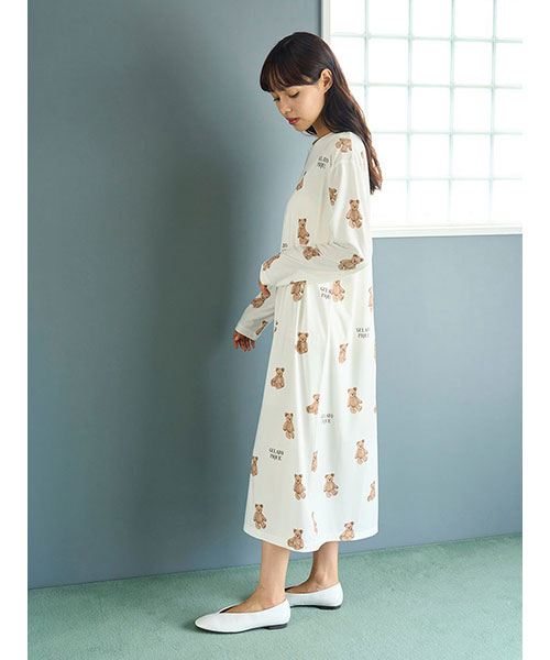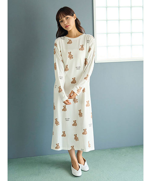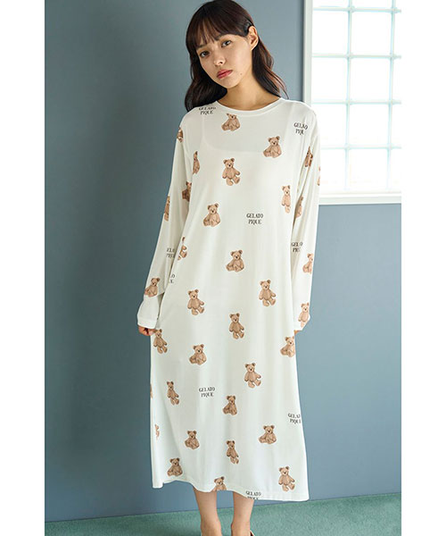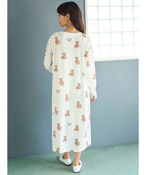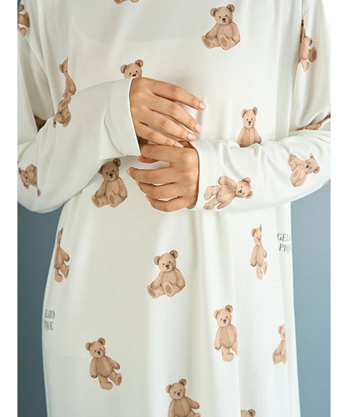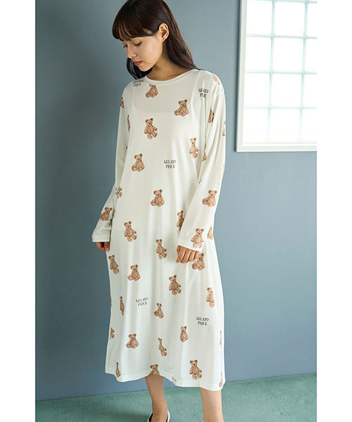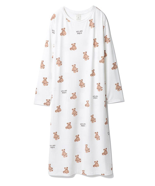 人気のアイテムがリバイバルで再登場しました。3つのモチーフを総柄プリントした、なめらかな肌触りのベーシックなルームウェアシリーズです。今季のモチーフは、gelato piqueでいつも大人気のくまと、甘いいちごのカップケーキ、ふわふわなビションフリーゼの3種類。ひざ下の長めな丈でリラックスできるワンピースは、ゆったりとしたシルエットで休日もハッピーに過ごせそう。ベースカラーはオフホワイト(くま)、ピンク(いちごのカップケーキ)、ベージュ(ビションフリーゼ)の3色です。お揃い柄のエアリーモコジャガードシリーズと合わせてお楽しみください。