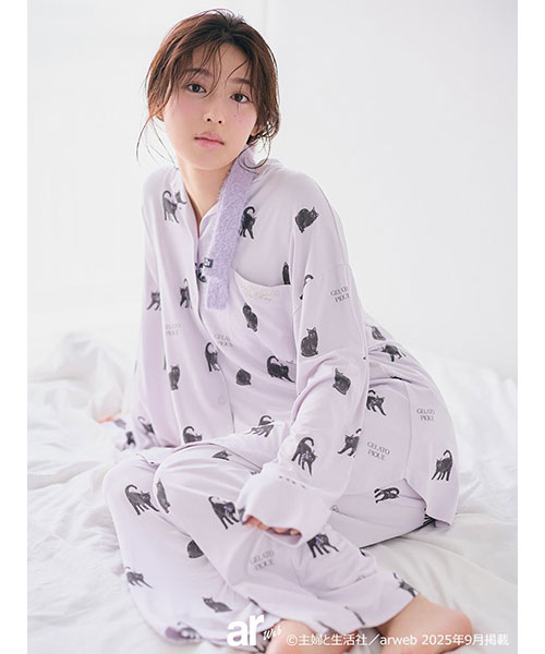 今年のHALLOWEEN COLLECTIONは、黒猫をテーマにした女子ライクなモノトーンスタイル。お座りポーズから、猫好きの方にはたまらない威嚇ポーズまで、表情豊かな黒猫を総柄プリントした柔らかなカットソー素材のロングパンツです。猫の耳にパープルをあしらったハロウィンらしいカラーリング。両脇に左腰にはキラリとしたシルバーの刺繍ロゴを入れました。同シリーズのシャツやロンT、やニットウェアと組み合わせてお楽しみください。