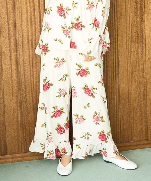 ヴィンテージローズ柄ロングパンツ