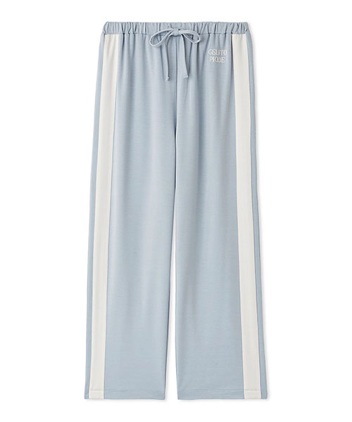 キャッチーなカラーリングのサイドラインがおしゃれな、ワンマイルにもご使用いただけるインレイカットソーのロングパンツ。飽きのこないベーシックな色使いで、左腰にもロゴ刺繍を小さく添えました。程良い厚みがあって透けにくく、ジャージ感覚でお楽しみいただける1本です。色はオフホワイト、ブルー、グレーの3色展開。同シリーズのロングTシャツとコーディネートしてお楽しみください。