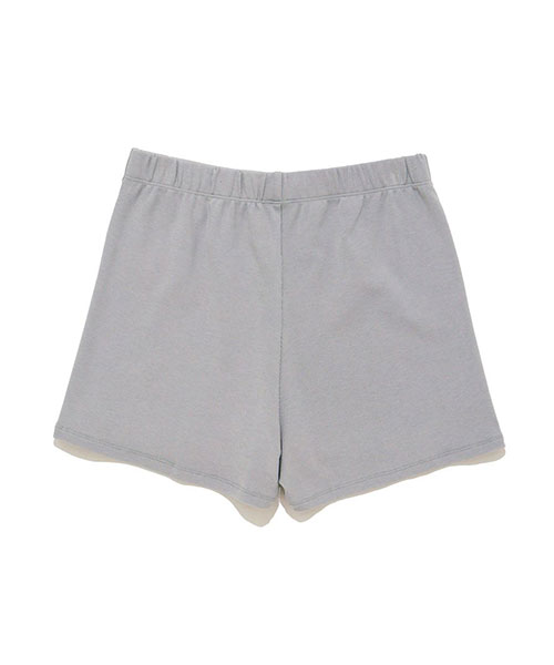 汗を吸って温かさを保つHOT FABRICの柔らかなリブカットソーを使用した、トレンド感たっぷりのルームウェアシリーズ。ウエストにワッペンのようなロゴを付けたシンプルなショートパンツです。コンパクトなシルエットで、ルームウェアにはもちろん、ワイドパンツ等のインナーとしてはいていただくのもおすすめ。色はクリーンな印象のオフホワイトとグレーをご用意。同時期に展開する裏毛ロングパンツや、お好みのニットロングパンツに合わせてお楽しみください。