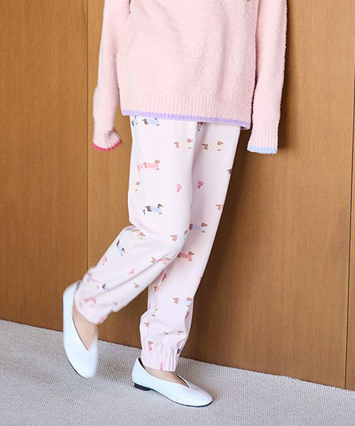 ちょこんとした足が愛嬌たっぷり。ダックスフンドがカラフルなお洋服を着た、親子で楽しめる総柄プリントのカットソーシリーズです。薄すぎず、適度な厚みでこれからの季節にちょうど良いロングパンツ。ボーダー柄やロゴ入りなど、gelato pique風のお洋服をまとったダックスたちがキュートです。裾にゴム入りなのでまくれにくい着用感。左腰にはPIQUEのロゴ刺繍も入れました。色はクリームとピンクの2色展開。同シリーズのロンTやベビモコダックスシリーズと合わせたり、KIDS、BABYアイテムとのリンク・コーディネートもお楽しみいただけます。