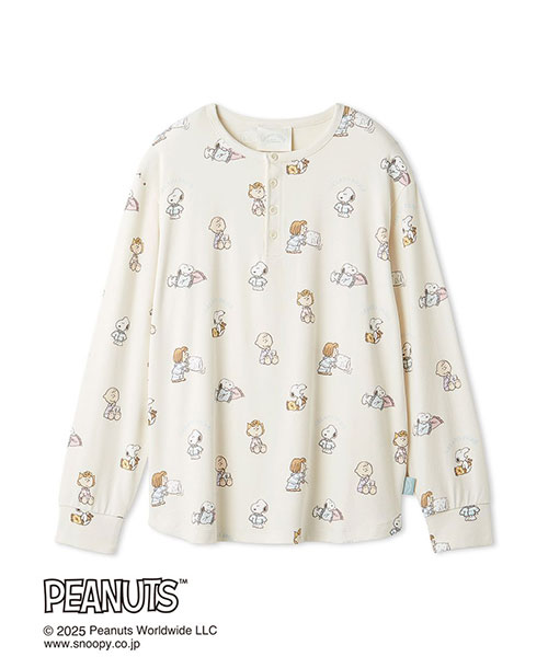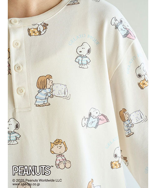 【PEANUTS ・ gelato piqueだけのオリジナル描き起こし・gelato piqueだけの特別なオリジナルアートを総柄プリントしたヘンリーネックのプルオーバー】