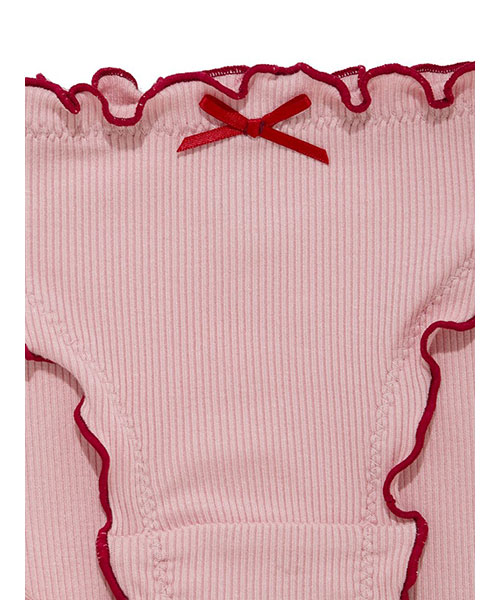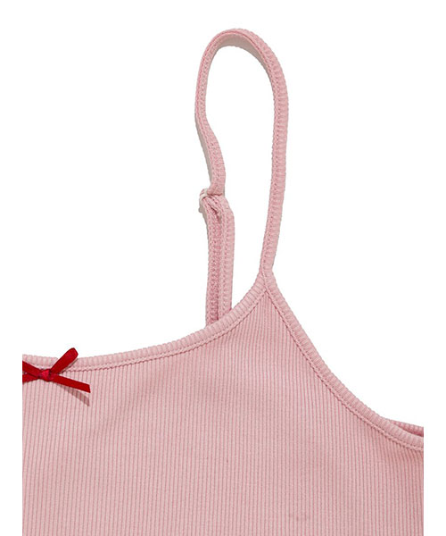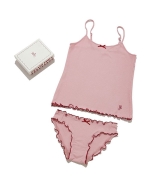 HOLIDAYシーズンの特別なおうち時間にお届けしたい、キャミソールとショーツのセットアイテムです。素肌に心地良いしなやかなリブ素材を使用。キャミソールは胸元のリボンと、左裾に入れたワンポイント刺繍がさりげないアクセントに。赤いメローステッチを効かせたショーツも、フロントに小さなリボンを添えました。特製の専用ボックスに入れてお届けするので、季節のギフトにもおすすめのアイテムです。