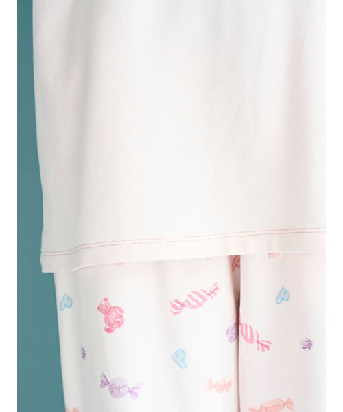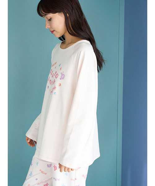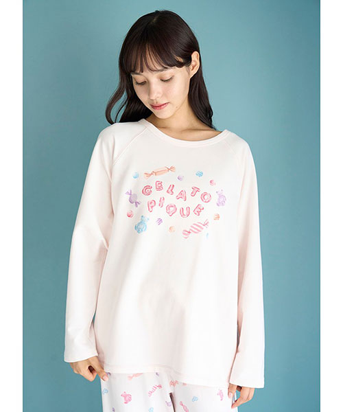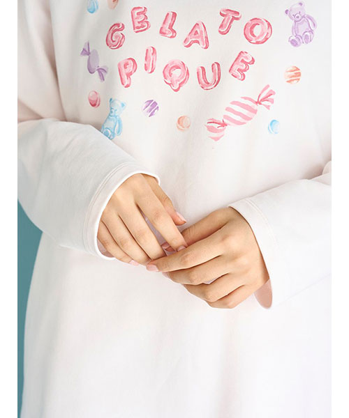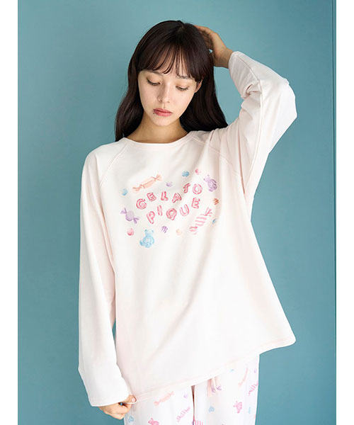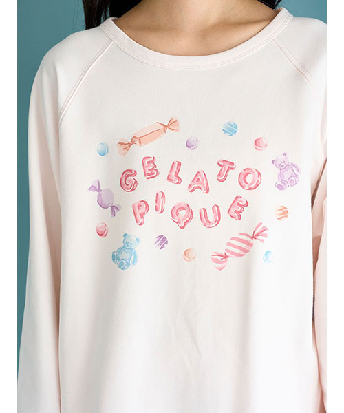 gelato piqueらしいベアやロゴモチーフのカラフルなキャンディを散りばめた、HAPPYな雰囲気のワンポイントロングTシャツです。季節の変わり目に1枚でも着用いただける、程良くふっくらとしたコットン混のインレイ素材を使用。腕周りにストレスがないラグランスリーブでお作りしました。色はピンクと杢グレーの2色展開。同シリーズのロングパンツや、同時期に展開するベビモコカラフルボーダーシリーズと合わせるのがおすすめ。KIDS、BABYとのリンク・コーディネートもお楽しみいただけます。