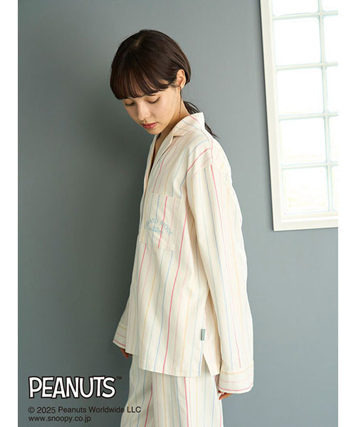 【PEANUTS】オリジナルアート レインボーストライプネルシャツ