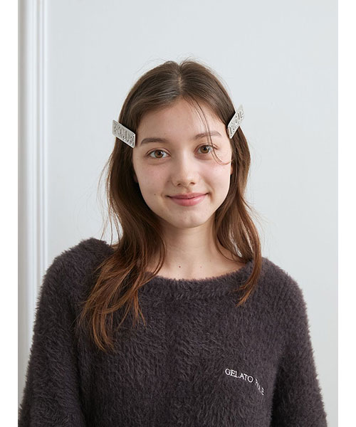 今年のHALLOWEEN COLLECTIONは、黒猫やリボンをテーマにした女子ライクなモノトーンスタイル。PIQUEのロゴをシルバープレートにあしらった、2個セットのヘアクリップです。ハロウィンコレクションのテーマカラーとなっているダークグレーやパープルといった色調に似合う、きらきらとしたシルバーの質感。同シリーズのニットウェアや雑貨と組み合わせてお楽しみください。
