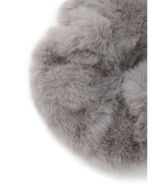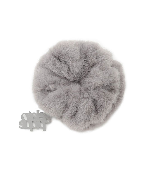 毛足が長めのリッチなファー素材に、大きめのロゴデザインをあしらったスタイリッシュなシュシュです。存在感のあるロゴチャームは本体の色と同色でデザイン。ヘアアレンジにはもちろん、アクセサリー感覚で手首に巻いておくだけでもキュートなアイテムです。色はアイボリーとブルー、グレーの3色展開。同シリーズの小物を組み合わせてギフトにしたり、同時期に展開する裏毛のルームウェアとコーディネートするのもおすすめです。