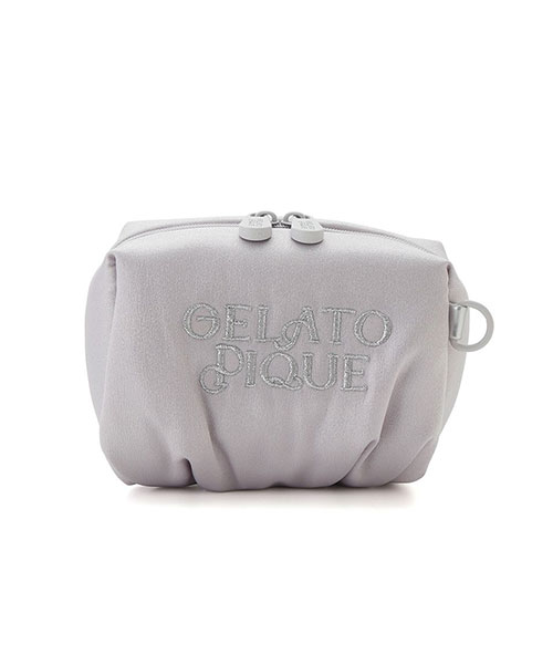 gelato piqueらしいきれいなカラーリングのサテン素材を使用した、トレンド感のある機能的な小物シリーズ。ギャザーでふんわりとしたシルエットに仕上げた、ロゴ刺繍入りのマチ付きミニポーチです。内ポケット付きでメイクポーチにちょうど良いサイズ感。同シリーズのハンドルストラップやリップケース、ビーズチャームなどが取り付け可能で、お好みのカスタムをお楽しみいただけます。