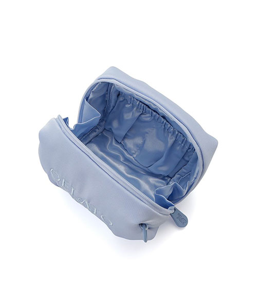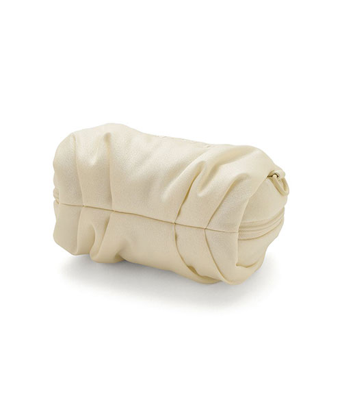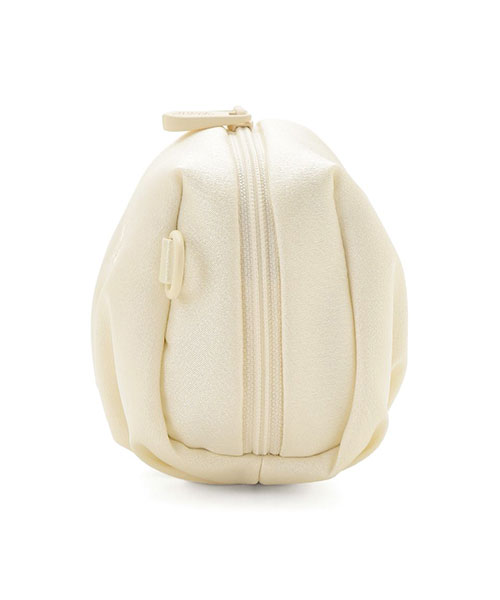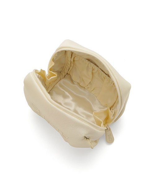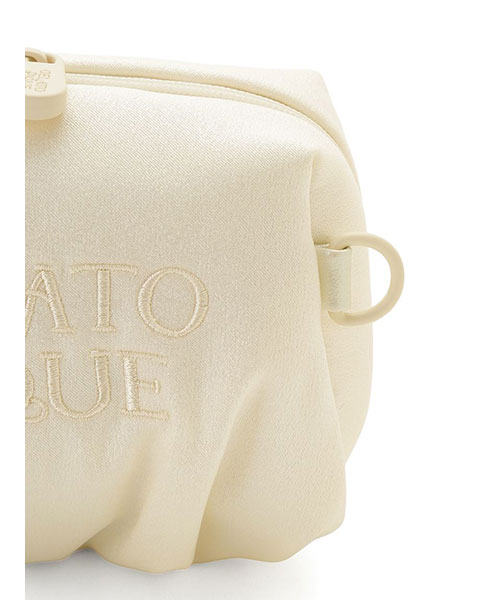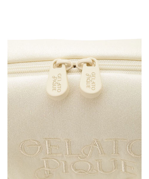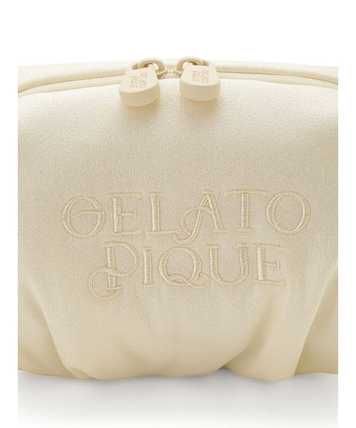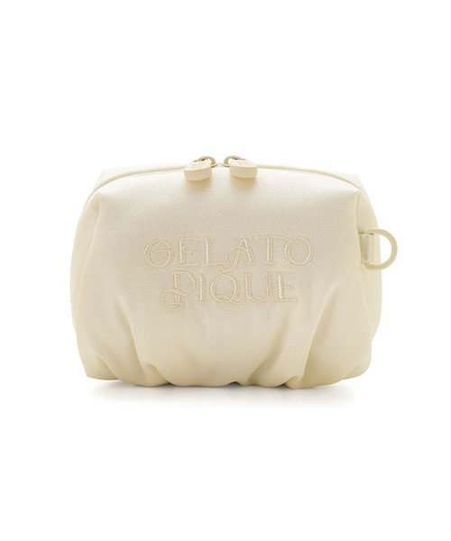 gelato piqueらしいきれいなカラーリングのサテン素材を使用した、トレンド感のある機能的な小物シリーズ。ギャザーでふんわりとしたシルエットに仕上げた、ロゴ刺繍入りのマチ付きミニポーチです。内ポケット付きでメイクポーチにちょうど良いサイズ感。同シリーズのハンドルストラップやリップケース、ビーズチャームなどが取り付け可能で、お好みのカスタムをお楽しみいただけます。