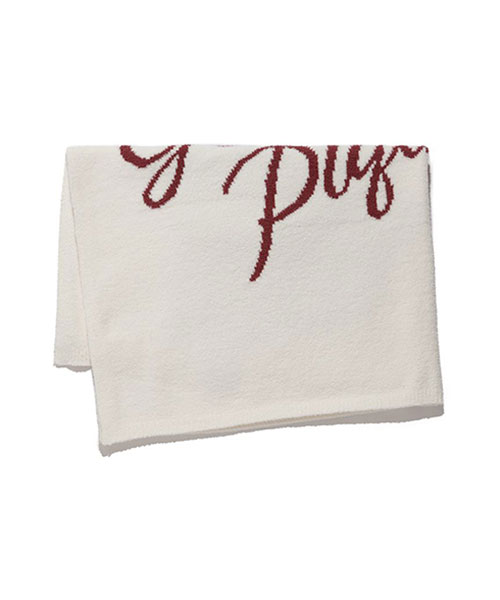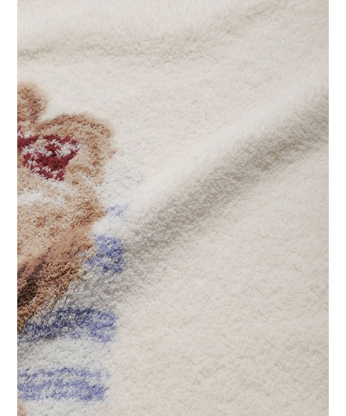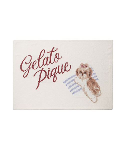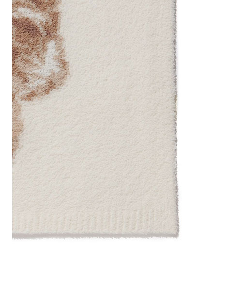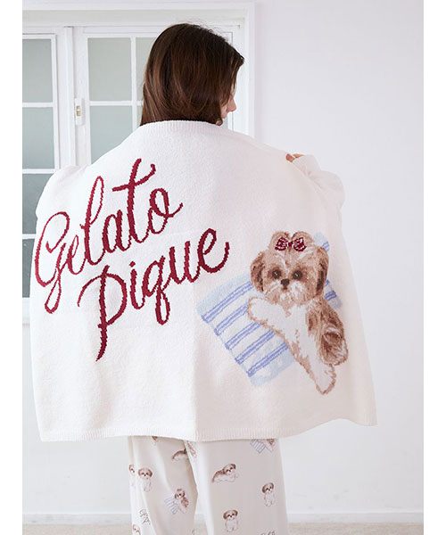 お気に入りの枕に寄り添うシーズー犬に癒される、ジャガードニットのシリーズです。ふんわりした風合いの絵柄に、ロゴジャガードをあしらったブランケット。デスクワーク時の膝掛けや肌寒いときの肩掛けにちょうど良い、コンパクトなサイズ感で仕上げました。同シリーズのウェアとコーディネートしたり、シーズー好きの方へのギフトにもおすすめのアイテムです。