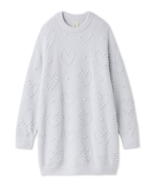 ぽこぽことした立体的な丸い編み目でハート模様を作った、暖かな風合いのニットシリーズです。やや短めの丈感で仕上げたワンピースは、ボリューミーな袖のバランス感がおしゃれなシルエット。色合いがシンプルなので、お好みのレギンスやボトムと合わせて幅広く着回せるのも魅力です。色はナチュラルなクリームと淡いブルーの2色をご用意しました。