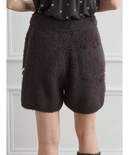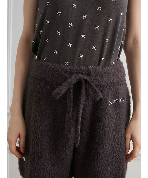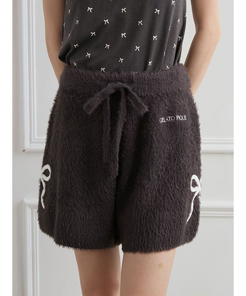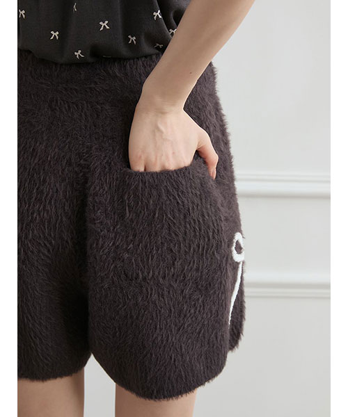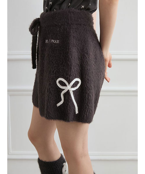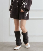 今年のHALLOWEEN COLLECTIONは、トレンドのリボン柄をフィーチャーした女子ライクなモノトーンスタイル。羽根のように軽い’フェザー’ニットに、ぷくっと立体的に仕上げたリボンを縫い付けたショートパンツです。ベーシックな形なので、お手持ちのトップスに合わせて着回しにも重宝する1枚です。左腰にさりげなくブランドロゴ刺繍も添えました。同シリーズのカーディガンやレッグウォーマーと合わせるのがおすすめです。