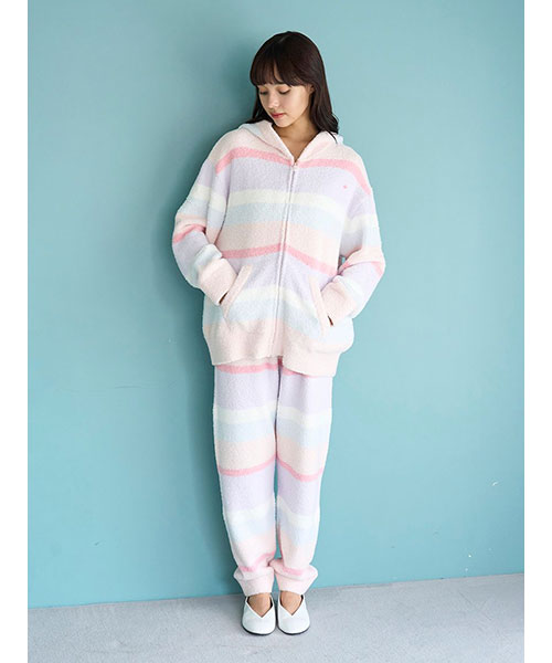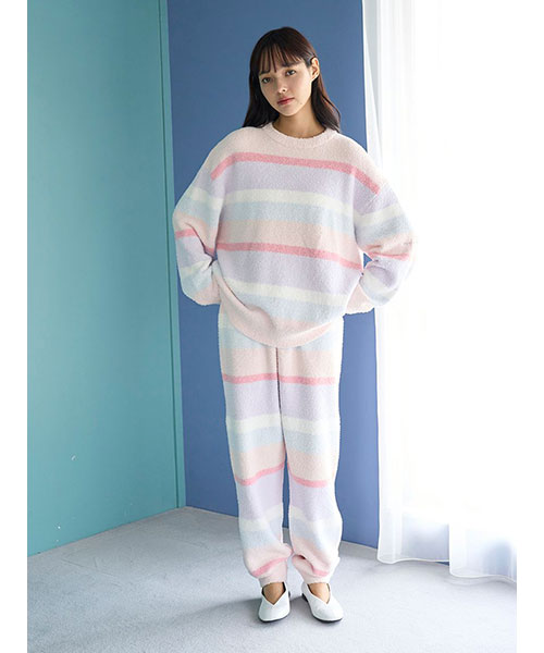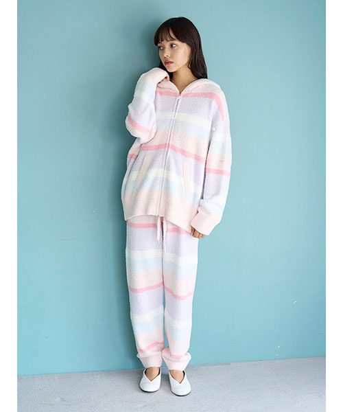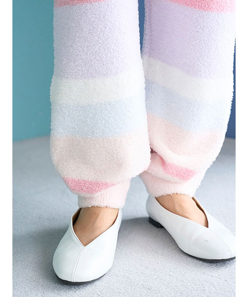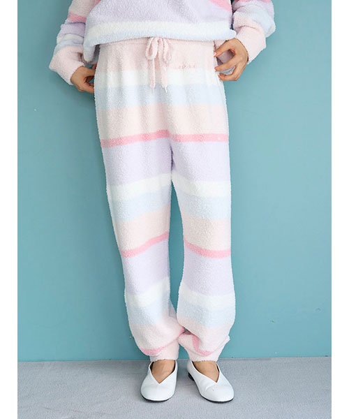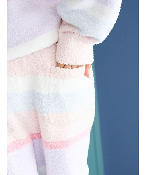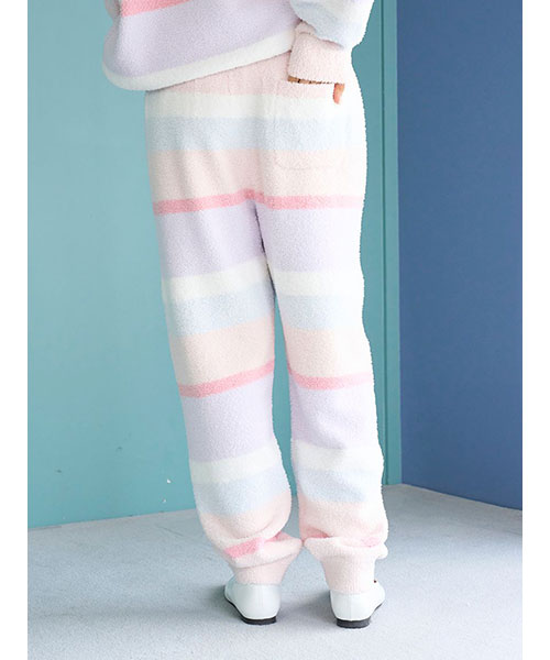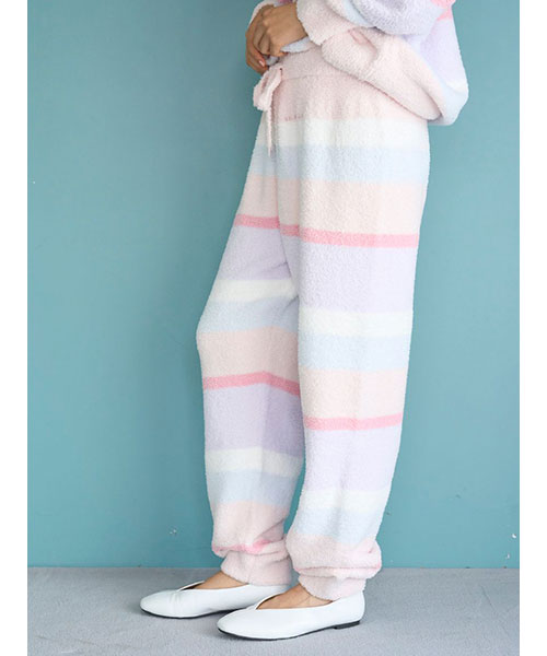 キャンディのようなカラフルなボーダー柄が幸せ気分を演出する、親子でお楽しみいただける’ベビモコ’シリーズです。ふっくら軽いはき心地のロングパンツは、裾を絞った動きやすいシルエット。毛足が長すぎないので、季節の変わり目から春先までロングシーズンでお楽しみいただける1枚です。左腰にワンポイントでロゴ刺繍も入れました。色はピンクとブルーの2色展開。同シリーズのパーカやプルオーバー、同時期に展開するキャンディ柄シリーズと合わせるのがおすすめ。KIDS、BABYアイテムとのリンク・コーディネートも可能です。