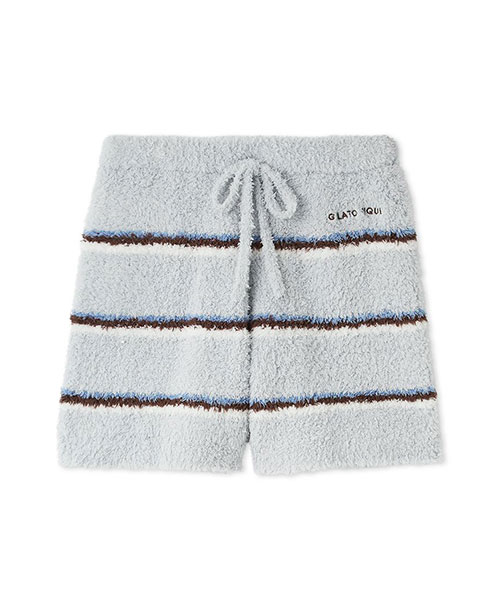トレンドの細いピッチのボーダー柄を、毛足の長いもこもこ素材’ジェラート’に落とし込んだシリーズです。腰回りの冷え対策にもおすすめの、ふわふわのはき心地が幸せなショートパンツ。細いピッチの中にもしっかり配色を効かせて、今っぽいスクールテイストに仕上げました。色は甘いジェラートのようなアイボリーとピンク、ブルーの3色展開。同シリーズのトップスや小物と合わせたり、同時期に展開するカレッジロゴシリーズのロンTとコーディネートするのもおすすめです。